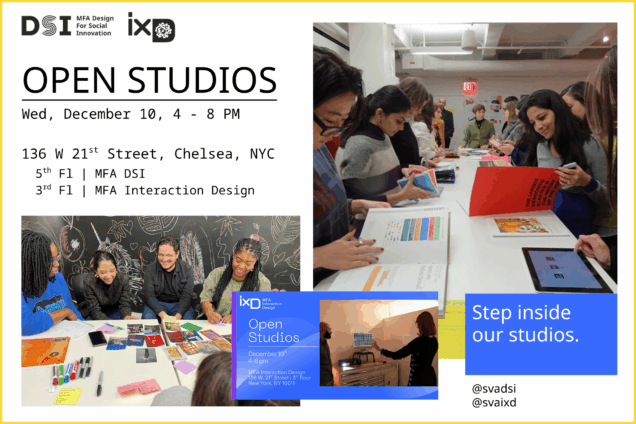 Come to the School of Visual Arts’ Fall OPEN STUDIO at MFA Design for Social Innovation and MFA Interaction Design.