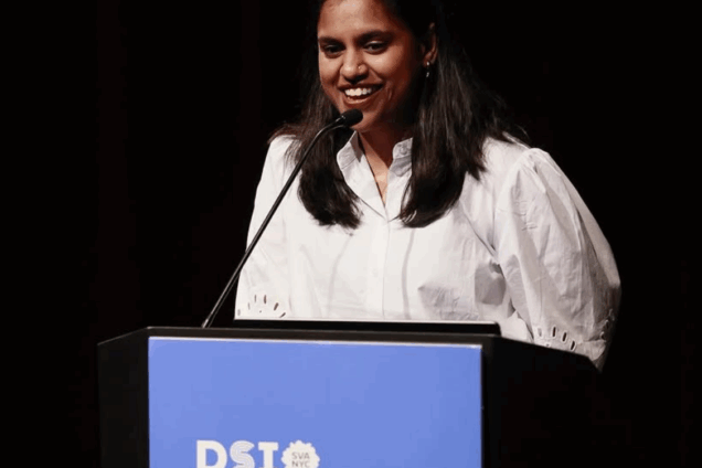 “So I invite you – To build cities, classrooms, and systems where people don’t have to leave their tongues behind to belong.” – Susanti Vijaykumar