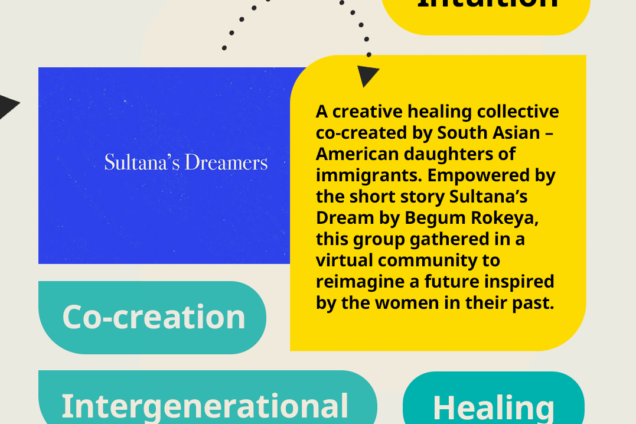 Zahra’s Thesis project, “Sultana’s Dreamers” is a creative healing collective co-created by South Asian-American daughters of immigrants. Empowered by the short story Sultana’s Dream by Begum Rokeya, this group gathered in a virtual community to reimagine a future inspired by the women in their past. In strengthening our creative, cultural intuition to gather, tell stories, and make, they began the work of intergenerational healing as daughters and ancestors.