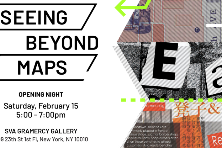 Seeing Beyond Maps is a transmedia installation curated and designed and features graduate students from SVA – MFA Design for Social Innovation. The exhibition sparks a dialogue about how maps can be fluid, multidimensional, and deeply human.